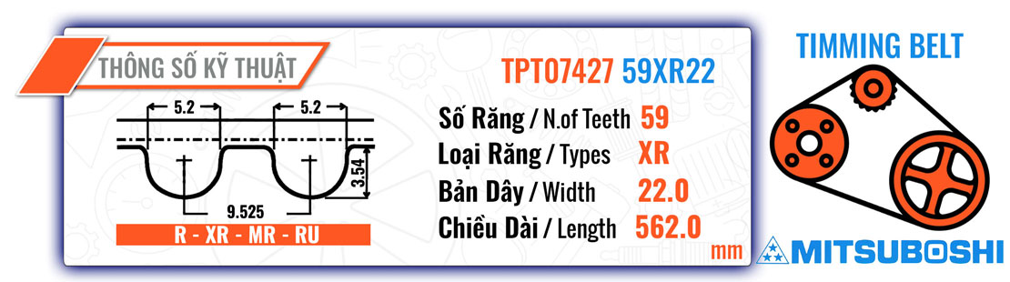 TPT07427 59XR22 - Dây Curoa Cam / Dây Đai Răng Kia CARNIVAL V6 98-05 Mitsuboshi - Japan