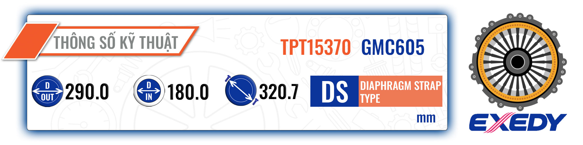 GMC605 Mâm Ép - Bàn Ép Kích Thước [290-180-320.7] Exedy - Japan