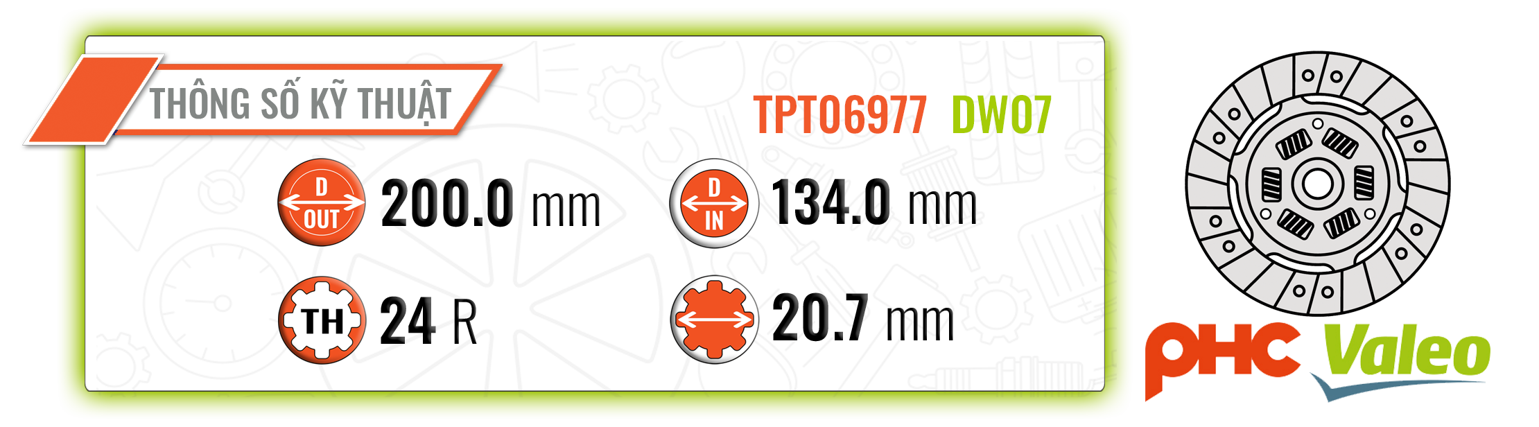 DW07 Lá Côn Daewoo LANOS - [200.0 - 134.0 - 24R - 20.7] [VKD24068 - VKD27170] VALEO