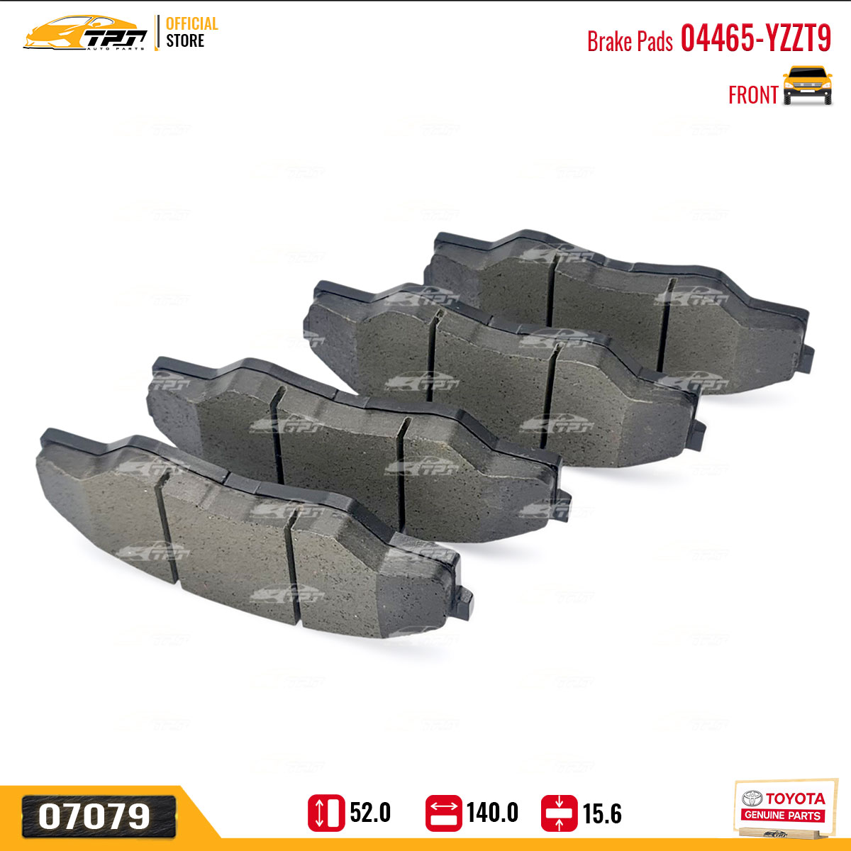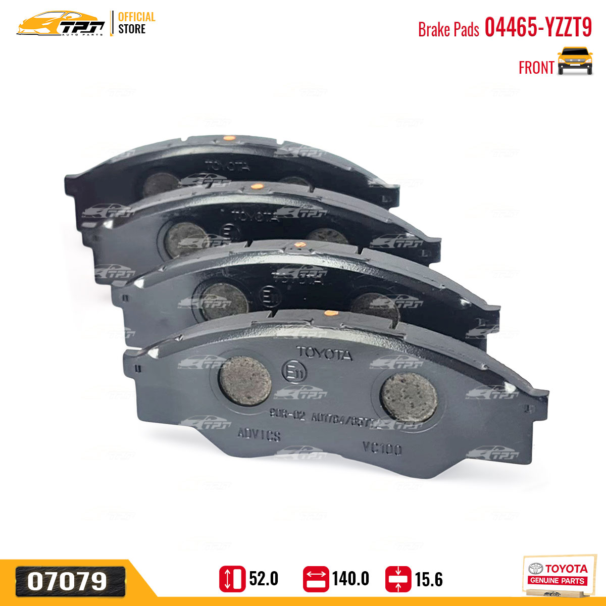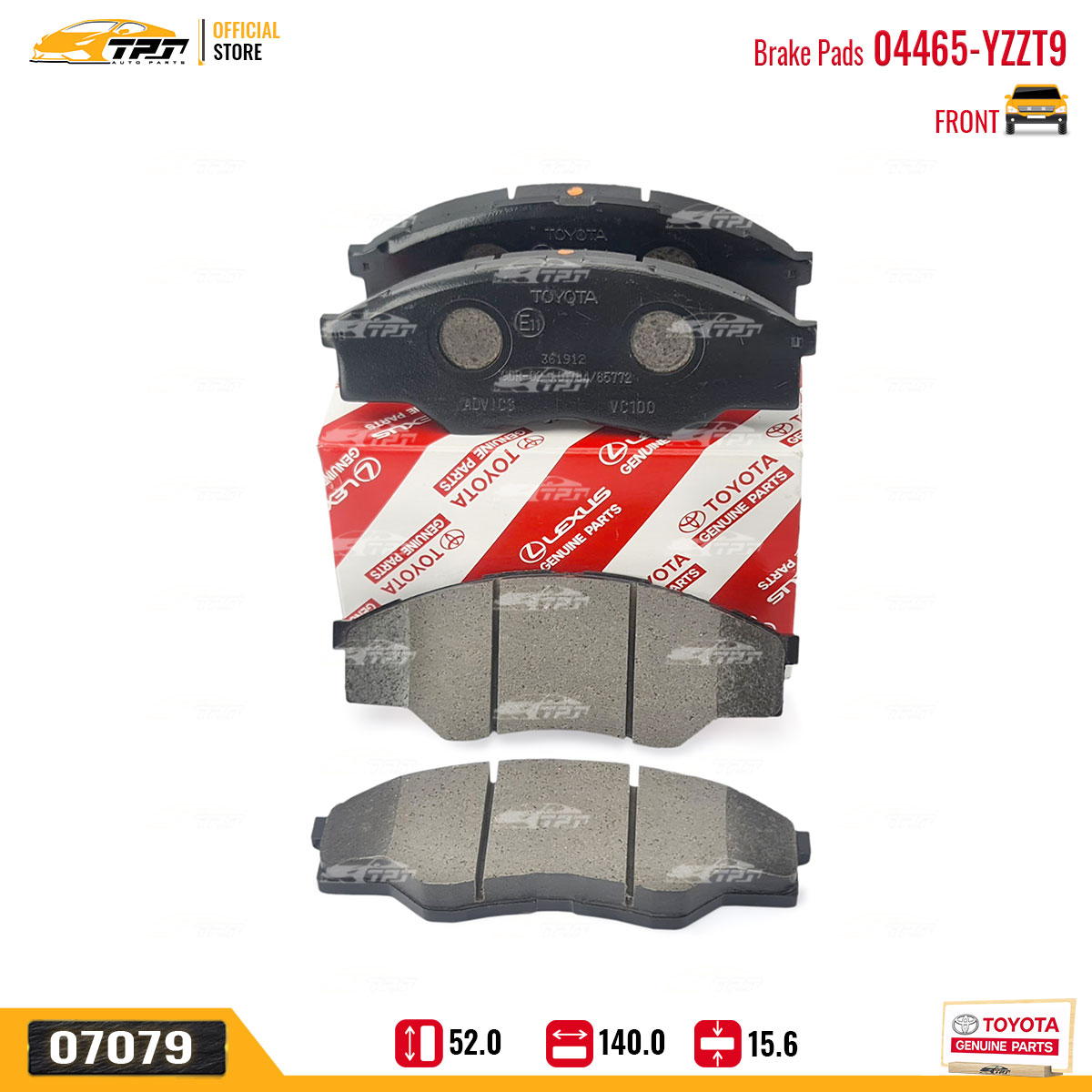 04465-YZZT5 Bố Thắng - Má Phanh TRƯỚC Toyota PRADO 2.7 02- HILUX 2.4 2.5 2.8 3.0 DIESEL 15- FORTUNER 2.4 2.5 2.7 05- Lexus GX460 09- GX470 02-09 (04465-YZZT5) Hàng Hãng Toyota