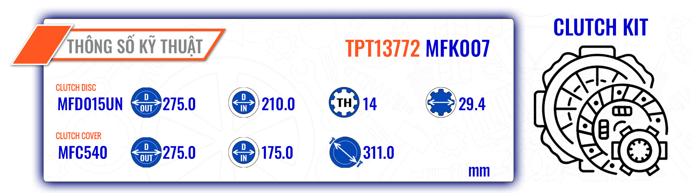 MFK007 Bộ Ly Hợp Lá Côn - Mâm Ép - BiTê (MFD015UN - MFC540 - BRG362) Kích Thước [275-180-14R-29.4] Exedy - Japan