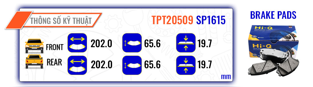 SP1615 Bố Thắng - Má Phanh TRƯỚC & SAU [Trong 202-65.6-19.7 Ngoài 202-65.6-19.7] Hi-Q