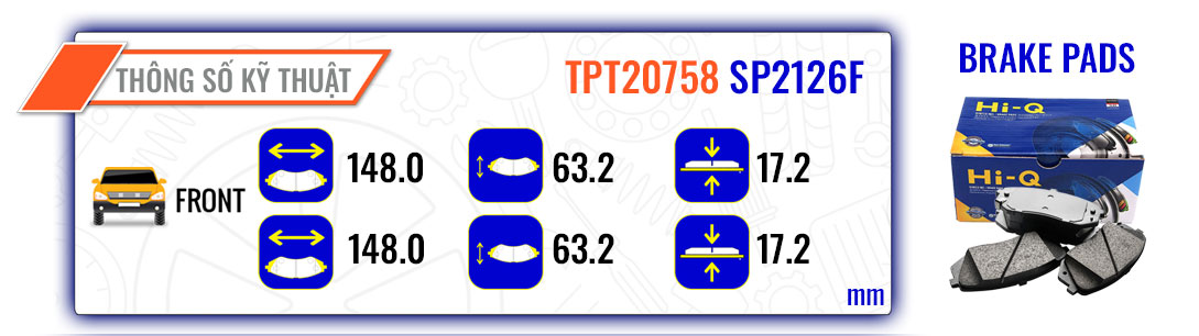 SP2126-F Bố Thắng - Má Phanh TRƯỚC [Trong 148-63.2-17.2 Ngoài 148-63.2-17.2] Hi-Q
