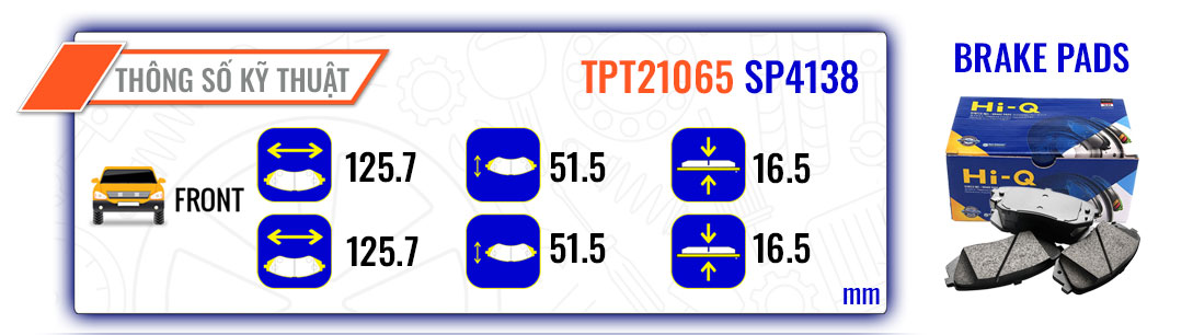 SP4138 Bố Thắng Má Phanh TRƯỚC 1550219 [Trong 125.7-51.5-16.5 Ngoài 125.7-51.5-16.5] Hi-Q