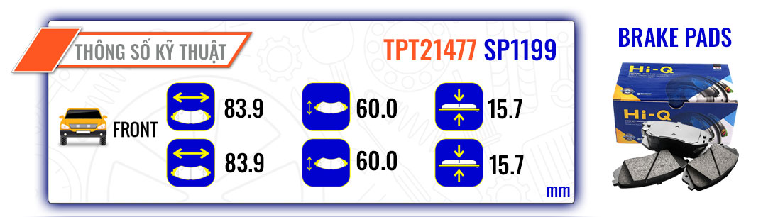 SP1199 Bố Thắng - Má Phanh TRƯỚC [Trong 83.9-60-15.7 Ngoài 83.9-60-15.7] Hi-Q